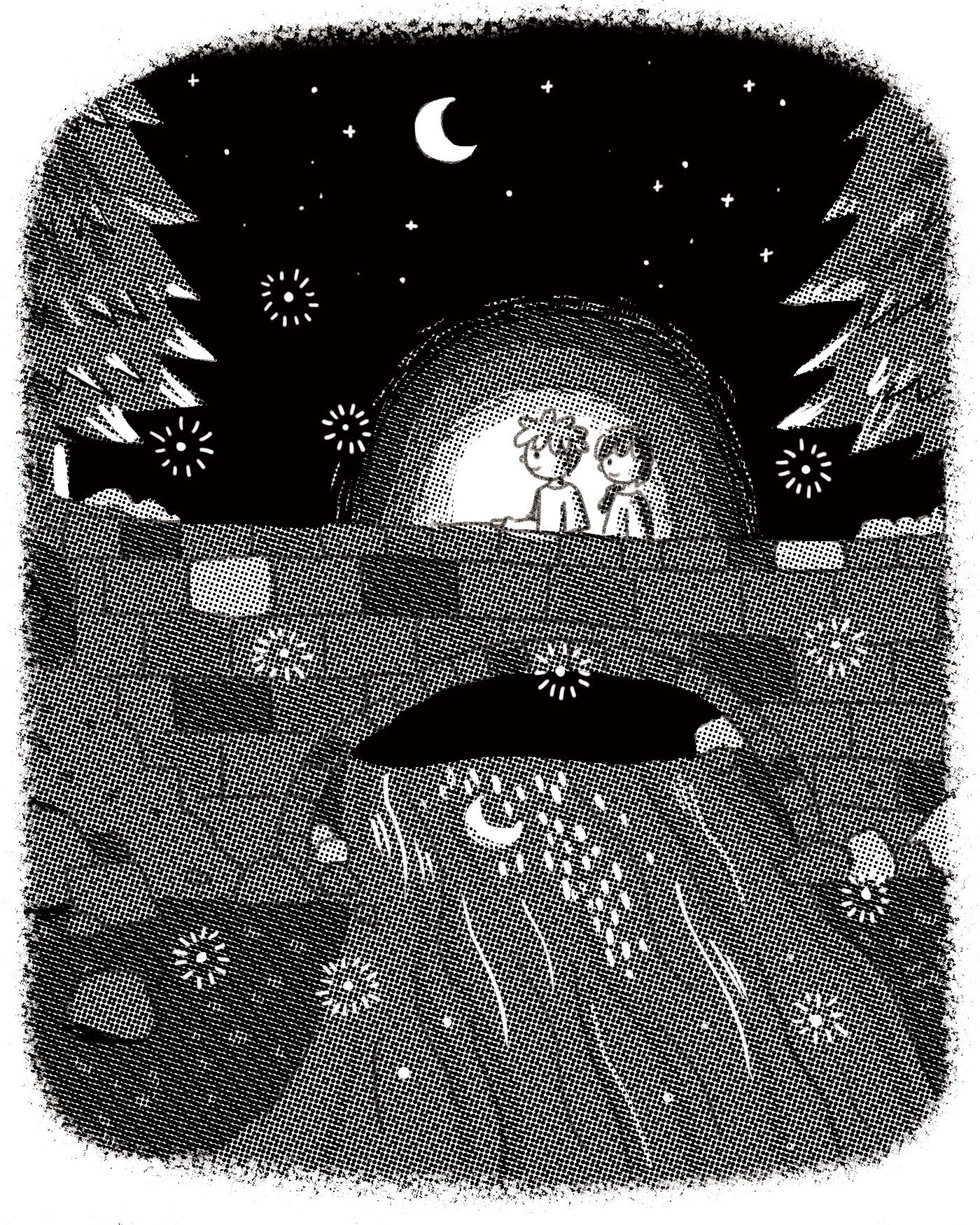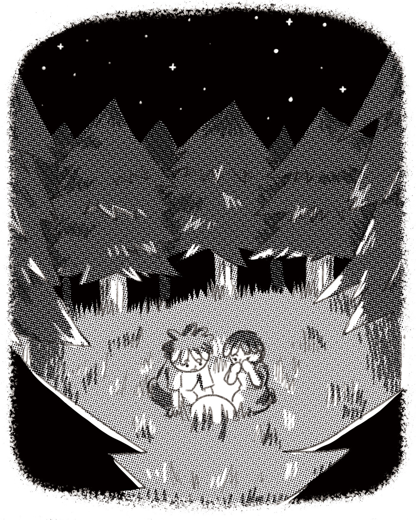Since I haven't seen the story's content, the scammer probably didn't bother to think of one either. But to put it simply, it's about two kids exploring a forest and discovering something along the way, with some magical elements included. I rarely create black-and-white works, but I decided to use dot patterns to express it, and I think it looks really cute. I hope everyone will like it!